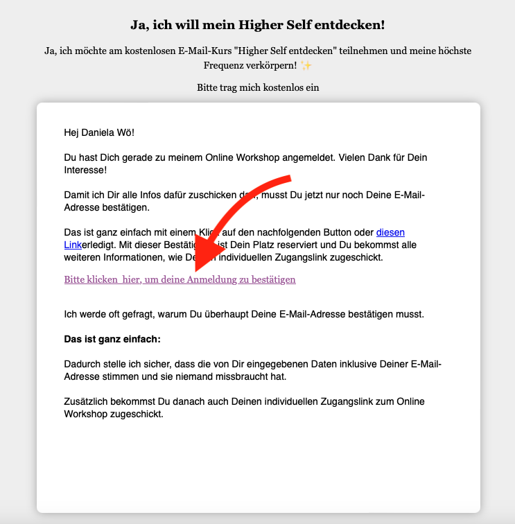 Direkt nach der Bestätigung deiner E-Mail-Adresse erhältst du eine Willkommens-E-Mail mit allen weiteren Informationen.