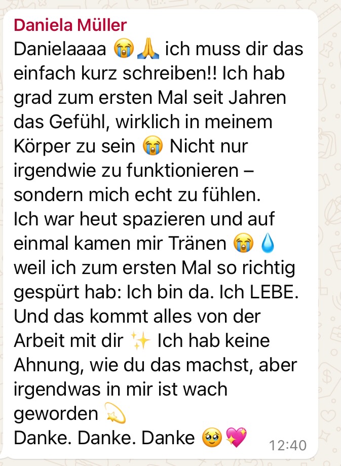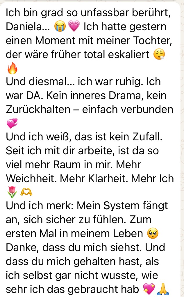 Du erkennst, wie dein Nervensystem dich schützt – und dich gleichzeitig begrenzt. Du beginnst, dich selbst zu regulieren, alte Prägungen zu entkoppeln und dich aus Überlebensmustern zu befreien.