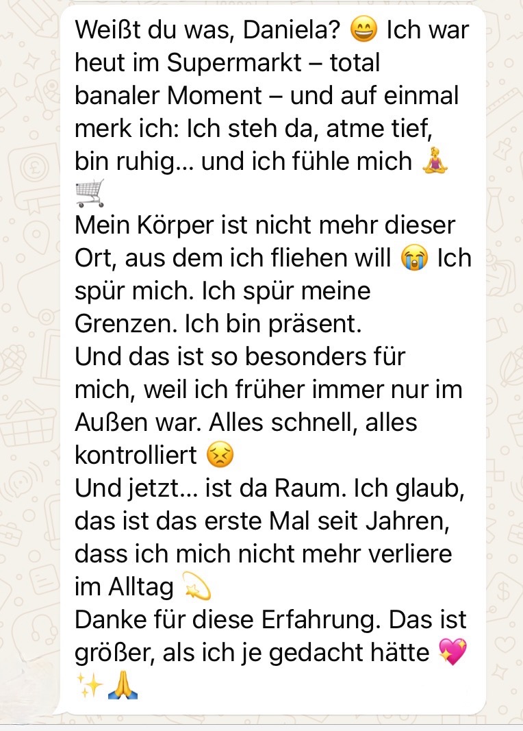 Nicht mit Druck. Sondern mit Bewusstsein, Präsenz und einem Raum, in dem wahre Veränderung möglich wird.