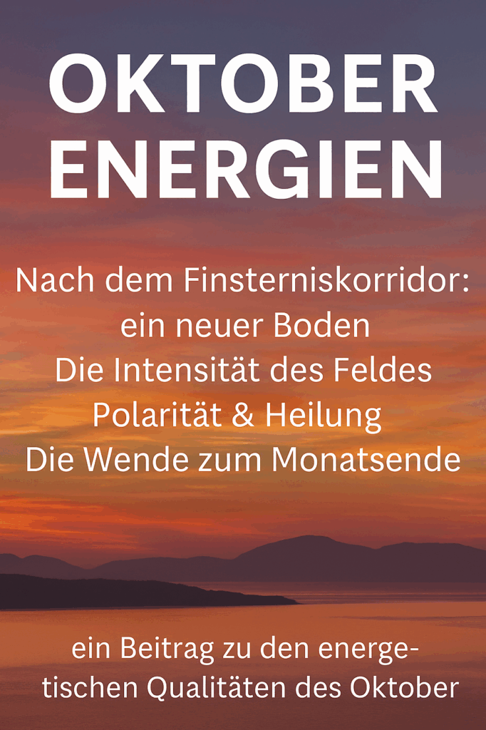 Der Oktober 2025 ist kein sanfter Übergang – er ist eine Schwelle, durch die wir in eine neue Schöpfungsphase eintreten. Nachdem uns der September durch den Finsterniskorridor geführt hat und alte Strukturen in uns und um uns zusammengebrochen sind, bringt der Oktober die Nachwirkung, die Manifestationskraft und die Heilung, die wir jetzt bewusst integrieren dürfen.