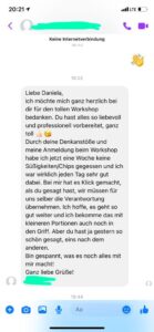 Dieser Workshop ist der Startschuss für eine Reihe von kleineren und größeren Workshops zu unterschiedlichen Themen. Es folgen dann mehrere kleine und größere Angebote, ein Frauenkreis und auch VIP-Coaching-Tage in kleinen Gruppen, für Frauen die in kurzer Zeit sehr intensiv an ihre Themen gehen möchten.